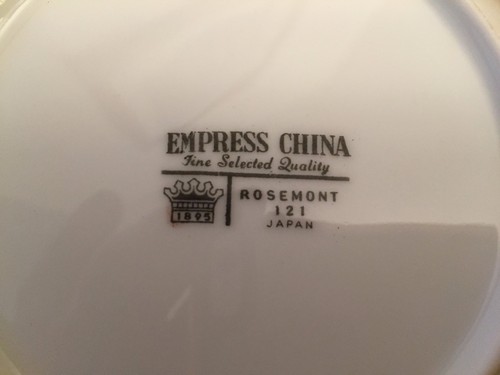 He is wanting me to find out if it is valuable or not empress china japan. Empress china rosemont 121 was manufactured by empress china of japan.